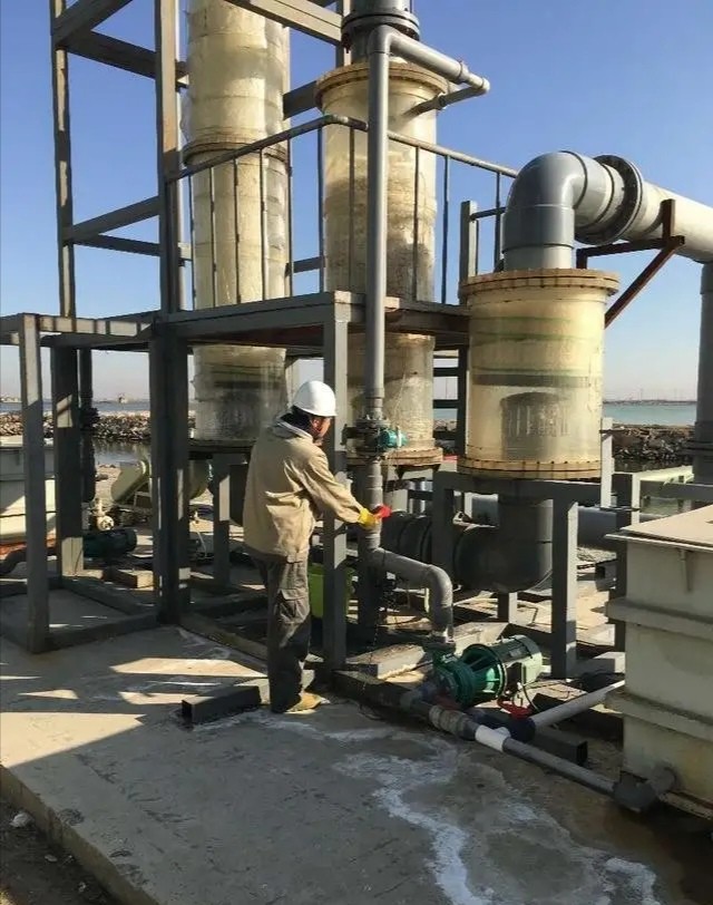 彼時,漢沽鹽場急需提高溴產(chǎn)能,淡化所的提溴團隊也需要將科研成果轉(zhuǎn)化為生產(chǎn)力。2019年1月7日,淡化所和漢沽鹽場簽署協(xié)議,共同建設(shè)全國首臺套(濃)海水高效節(jié)能提溴產(chǎn)業(yè)化裝置。
