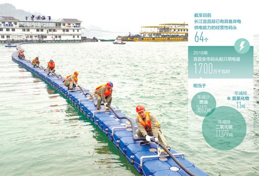 “以陸地清潔岸電代替船上柴油發(fā)電的使用,是一劑良方?!币瞬╇姽居嘘P(guān)負(fù)責(zé)人介紹,截至目前,長江宜昌段已有64個經(jīng)營性碼頭具備岸電供電能力。2018年,全市碼頭船只用電量1700萬千瓦時(shí),相當(dāng)于年減少燃油3612噸、減排二氧化碳11379噸、氮氧化物11噸。