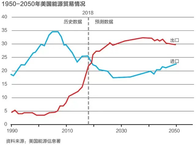 美國原油進(jìn)口量從2005年的1010萬桶/日下降至2018年的770萬桶/日,去年原油出口增至200萬桶/日。2018年美國石油貿(mào)易規(guī)模量達(dá)到1750萬桶/日,油品凈進(jìn)口降至230萬桶/日,這是自1967年以來的最低值,根據(jù)EIA的預(yù)測,美國未來30年內(nèi)都將是石油產(chǎn)品的“凈出口國”,這無疑是一項偉大的成就。