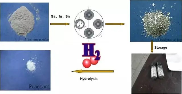 他這樣解釋這一技術(shù)的原理:鋁合金表面一般有一層氧化膜,這層氧化膜的活性比較低,通常不能跟水反應(yīng);但如果鋁合金表面沒有氧化膜,便隨時可以和水反應(yīng),氣體(氫氣)就出來了,我們會加入具體的催化劑(促成這個反應(yīng)過程)。