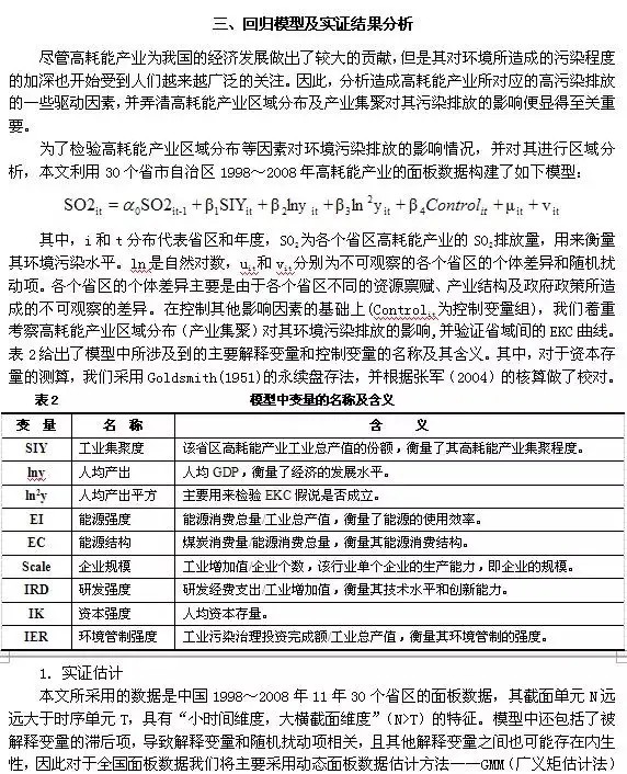 本文接下來的結構安排如下:第二部分描述高耗能產(chǎn)業(yè)的區(qū)域分布特征及環(huán)境污染分布狀況;第三部分為回歸模型構建和基于動態(tài)面板數(shù)據(jù)模型的實證檢驗及結果分析;第四部分為基本結論及政策含義。