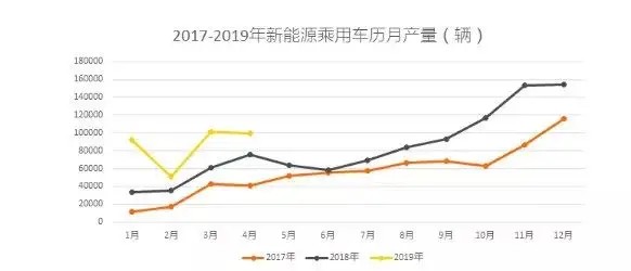 根據(jù)工信部合格證產(chǎn)量數(shù)據(jù),2019年4月新能源乘用車產(chǎn)量為9.9萬(wàn)輛,基本保持住了3月的產(chǎn)能水平,同比上漲31.82%。