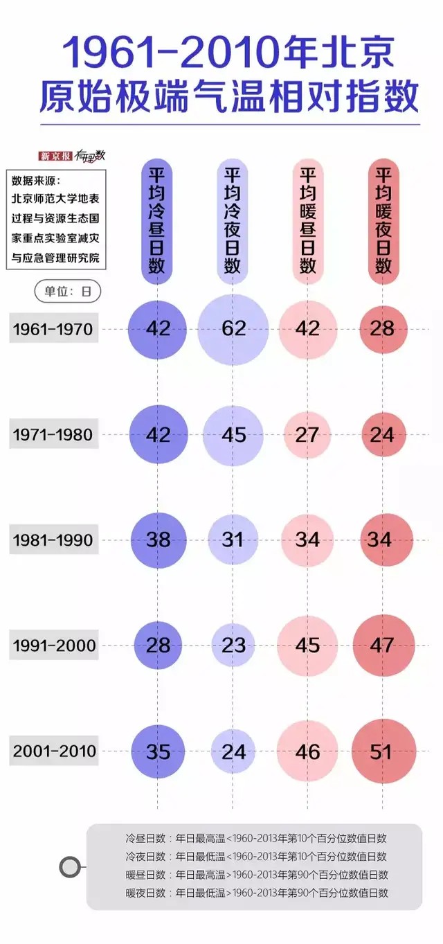 與此同時(shí),北京的夏天變長了,冬天變短了。數(shù)據(jù)顯示,1951年-1960年,北京平均每年有95天屬于夏季,到了2011-2018年,北京的夏季已增長到123天;1951年-1960年,北京平均每年有159天屬于冬季,到了2011-2018年,北京的冬季減少到142天。