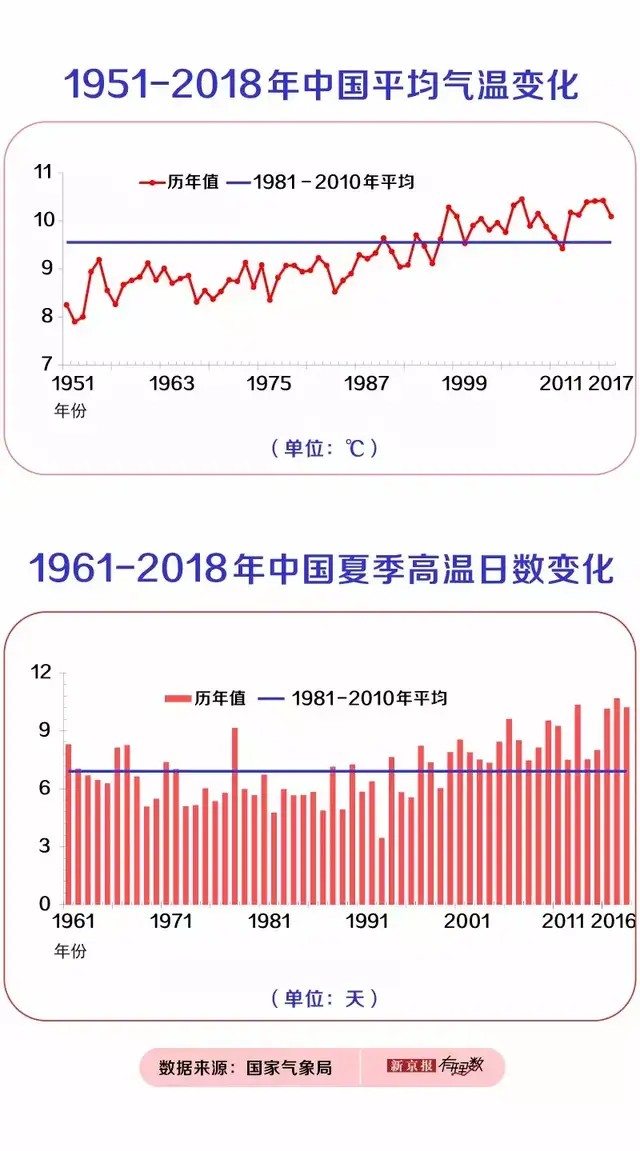 根據(jù)中國氣象局氣候變化中心日前發(fā)布的氣候變化藍(lán)皮書,1951-2018年,中國年平均氣溫每10年升高0.24℃,升溫率明顯高于同期全球平均水平。1901-2018年,中國地表年平均氣溫呈顯著上升趨勢,近20年是20世紀(jì)初以來的最暖時(shí)期。
