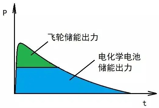 飛輪儲(chǔ)能和電池儲(chǔ)能結(jié)合,有助于進(jìn)一步提高儲(chǔ)能系統(tǒng)調(diào)頻性能。讓飛輪儲(chǔ)能去響應(yīng)大功率、短時(shí)間充放電的調(diào)節(jié)信號(hào),承擔(dān)尖峰出力部分,讓儲(chǔ)能電池去響應(yīng)基礎(chǔ)出力部分,減少充放電倍率,提高安全性,進(jìn)而延長(zhǎng)了使用壽命。