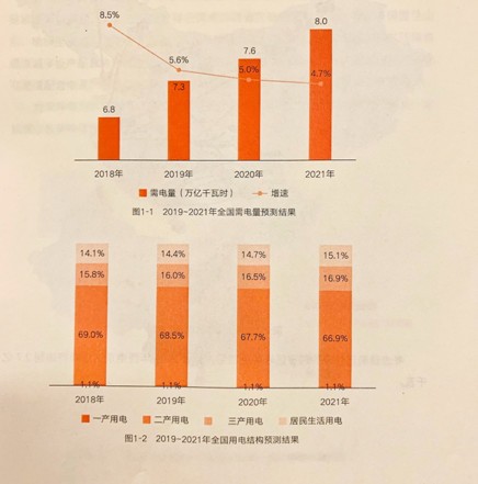 2019年,全社會(huì)用電量同比增長(zhǎng)5.6%,用電量達(dá)7.3萬(wàn)億千瓦時(shí);2020年,全社會(huì)用電同比增長(zhǎng)5.0%,用電量達(dá)7.6萬(wàn)億千瓦時(shí);2021年,全社會(huì)用電同比增長(zhǎng)4.7%,用電量達(dá)8.0萬(wàn)億千瓦時(shí)。