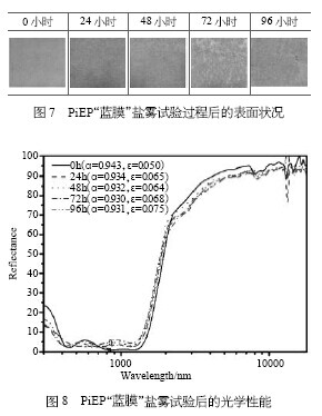 鹽霧試驗是考察涂層的耐腐蝕能力,一般是將其放在潮濕、有腐蝕介質(zhì)的環(huán)境中觀測其腐蝕發(fā)生的程度。鹽霧試驗后,涂層吸收比和發(fā)射比的變化反映出涂層的耐候性能。