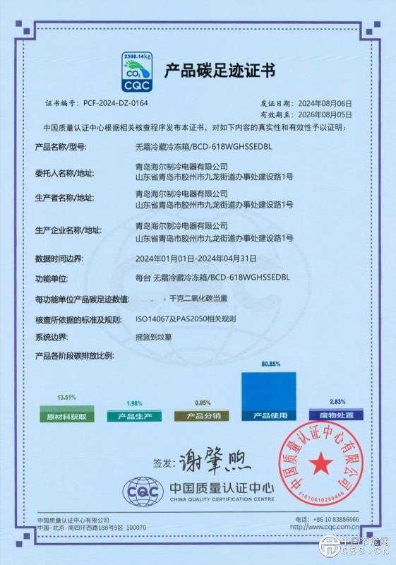 8月6日,中國質(zhì)量認(rèn)證中心(以下簡稱“CQC”)向青島海爾制冷電器有限公司頒出第一張線上產(chǎn)品碳足跡證書,這意味著國內(nèi)產(chǎn)品碳足跡認(rèn)證率先實(shí)現(xiàn)數(shù)字化、綠色化。據(jù)了解,線上產(chǎn)品碳足跡認(rèn)證是CQC聯(lián)合卡奧斯COSMOPlat,依托能碳管理平臺(tái)打造的權(quán)威認(rèn)證途徑,可通過線上的方式幫助企業(yè)高效、綠色地獲得認(rèn)證和出證。此外,重慶海爾空調(diào)有限公司、合肥海爾空調(diào)電子有限公司、青島鼎新電子科技有限公司等企業(yè)均通過線上認(rèn)證完成出證,成為首批借助數(shù)字化途徑完成碳足跡評(píng)價(jià)的企業(yè)。