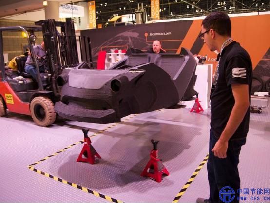 這種汽車可搭載乘客2人,主要由黑色塑料層和碳纖維加固層組成。Local Motors公司首席執(zhí)行官John Rogers接受采訪時表示:“我們是第一家利用3D打印技術、使用碳纖維增強型熱塑性塑料制造汽車的公司。座椅、車身、底盤、中心控制臺、引擎罩等都是3D打印的。”