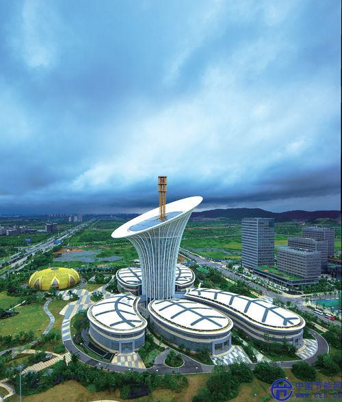 9月18日,經(jīng)過近4年的建設(shè),武漢光谷未來科技城中一座酷似“馬蹄蓮”的靈魂建筑——武漢新能源研究院正式投入使用。這座高達(dá)100多米、總投資5.31億元人民幣、面積達(dá)6.8萬多平方米的節(jié)能建筑是中國目前最大規(guī)模的仿生建筑。對此,荷蘭設(shè)計(jì)師沃特先生說,主塔樓造型選用馬蹄蓮花朵形狀這離不開他當(dāng)年在花店工作過的一段經(jīng)歷。優(yōu)美的馬蹄蓮花朵不僅需要集太陽、風(fēng)、水和大地而生,而且還最大限度地展示了節(jié)能技術(shù)。即“花瓣”朝向太陽,屋頂中心可鋪設(shè)太陽能光伏發(fā)電板,中心“花蕊”頂部可設(shè)豎軸風(fēng)力發(fā)電機(jī);主樓的獨(dú)特造型能使樓體置于其自身的陰影之下,因而極大地減少了來自外部的熱負(fù)荷。圖為武漢光谷外形酷似“馬蹄蓮”的建筑全貌。