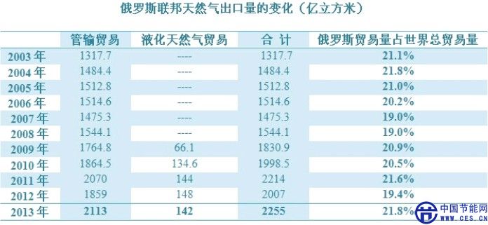 俄羅斯有著豐富的天然氣資源,仍然是世界上最大的天然氣出口國。天然氣貿(mào)易量一直占據(jù)全球貿(mào)易總量的20%,不像有些媒體說的貿(mào)易量縮減,見表。