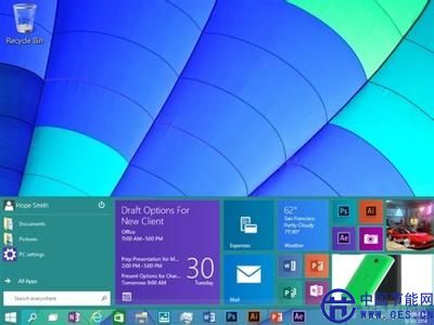 擴(kuò)展的開始菜單:人們熟悉的開始菜單重新回歸,可以通過單擊來選取最常用的功能和文件,開始菜單還提供了新的空間讓用戶個(gè)性化設(shè)置自己喜愛的應(yīng)用、程序、聯(lián)系人和網(wǎng)址。