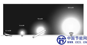 注: lm/W即流明/瓦,流明是從一光源放射出的可見光的量度。
