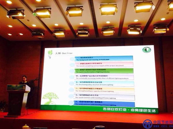 在今日上午的開幕式上,國家發(fā)改委、UNDP、GEF、國家節(jié)能中心相關(guān)領(lǐng)導(dǎo)、嘉賓進行了講話,并舉行了“告別白熾燈泡·點亮智慧城市”城市淘汰白熾燈啟動儀式,將以城市為單位淘汰白熾燈,發(fā)布了最佳能效照明設(shè)計及改造工程案例。國家發(fā)改委環(huán)資司呂文斌副司長到會講話。綠色照明項目辦公室呂芳副主任報告“中國淘汰白熾燈、推廣節(jié)能燈政策及進展”。