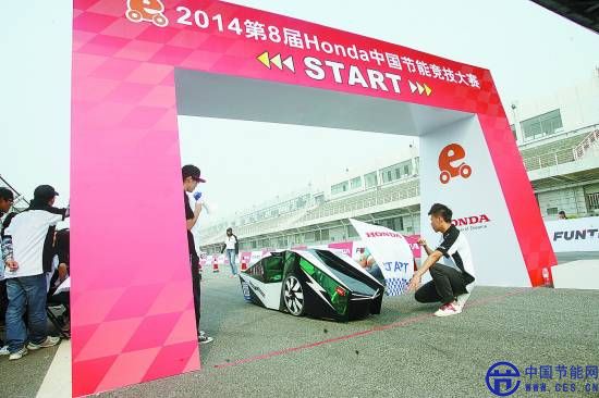 黃祺皓是中國青年報未來號的車手,今年是第二次參加本田中國節(jié)能競技大賽。賽車慢慢啟動,開始在賽道上跑起來。此時的黃祺皓置身于熒綠色PC板架構(gòu)的車廂內(nèi),雙腿筆直往前,身體略微往后傾,跑完四圈基本要保持同一姿勢。
