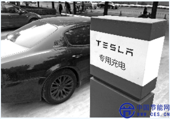 特斯拉充電樁已經(jīng)在中國迅速蔓延,圖為北京一寫字樓前的特斯拉專用充電樁。