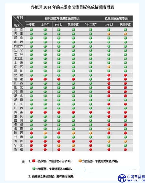 北極星節(jié)能環(huán)保網(wǎng)今日從國(guó)家發(fā)改委獲悉,各地區(qū)2014年前三季度節(jié)能目標(biāo)完成情況晴雨表日前已近發(fā)布。本網(wǎng)對(duì)晴雨表內(nèi)容進(jìn)行整理,全文如下: