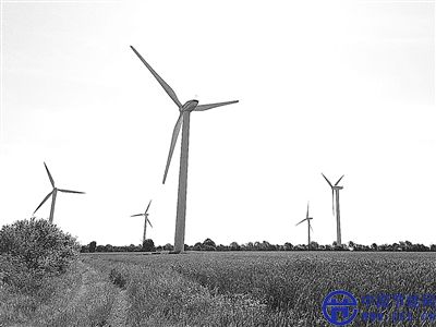 圖為德國胡蘇姆的陸上風(fēng)力發(fā)電場。