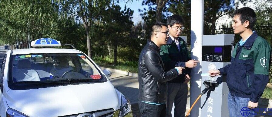 技術(shù)人員在給電動(dòng)出租車(chē)充電的駕駛員講解充電方法(11月5日攝)。近日,一項(xiàng)節(jié)能路燈充電樁實(shí)驗(yàn)項(xiàng)目落戶北京市昌平區(qū)京密路。實(shí)驗(yàn)項(xiàng)目由國(guó)家電網(wǎng)南瑞智芯微電子科技有限公司和北京市科委共同開(kāi)展,實(shí)驗(yàn)項(xiàng)目將現(xiàn)有京密路上88盞傳統(tǒng)路燈的功率高、效能低的高壓鈉燈更換為高亮度低能耗的LED燈,通過(guò)依附于路燈桿的智能充電設(shè)備將節(jié)約的電能用于電動(dòng)汽車(chē)充電,最大限度利用現(xiàn)有資源,解決特大城市征地難、電路設(shè)施鋪設(shè)難等一系列問(wèn)題,對(duì)推進(jìn)城市新能源汽車(chē)應(yīng)用具有重要意義。