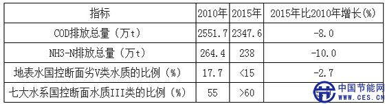 水環(huán)境質(zhì)量總體呈下降趨勢,顯然與我國建設(shè)“美麗中國”的愿景相背離,水污染治理勢在必行。為遏制水污染,改善水環(huán)境質(zhì)量,國家加大了水污染治理的政策支持力度。環(huán)保“十二五”規(guī)劃,明確了到2015年主要污染物排放總量顯著減少,城鄉(xiāng)飲用水水源地環(huán)境安全得到有效保障,水質(zhì)大幅提高,城鎮(zhèn)環(huán)境基礎(chǔ)設(shè)施建設(shè)和運行水平得到提升,生態(tài)環(huán)境惡化趨勢得到扭轉(zhuǎn)等主要目標(biāo)。在主要污物排放約束性指標(biāo)方面,與“十一五”相比,增加了水中氨氮指標(biāo),并要求到2015年末化學(xué)需氧量(COD)和氨氮(NH3-N)排放總量在2010的基礎(chǔ)上分別削減204.1萬t 和26.4萬t。同時,在地表水水質(zhì)方面也設(shè)定了約束性目標(biāo)。