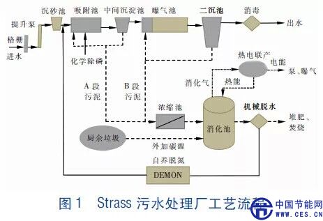 Strass污水處理廠規(guī)模雖小,但通過主流工藝AB法可以獲得較多剩余污泥,與外源廚余垃圾一同實(shí)施厭氧共消化所產(chǎn)生的生物氣(CH4)熱電聯(lián)產(chǎn)(CHP)后完全可以滿足其運(yùn)行能耗(熱、電),早在2005年便實(shí)現(xiàn)了“碳中和”運(yùn)行目標(biāo),成為污水處理碳中和運(yùn)行的國際先驅(qū)。
