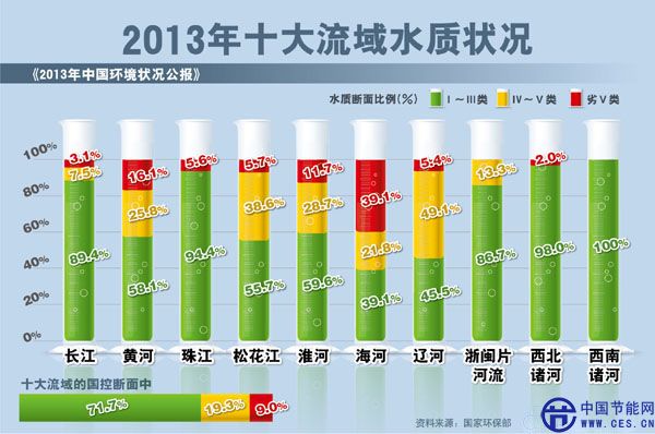 《2013中國環(huán)境狀況公報》顯示,全國地表水總體輕度污染,其中黃河、淮河、海河、遼河、松花江五大水系水質(zhì)污染,全國4778個地下水監(jiān)測點中,約六成水質(zhì)較差和極差。