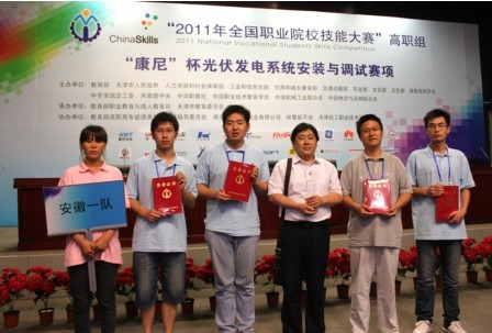 學(xué)院學(xué)生榮獲2011年全國(guó)職業(yè)院校技能大賽“光伏發(fā)電系統(tǒng)安裝調(diào)試”項(xiàng)目二等獎(jiǎng)合影