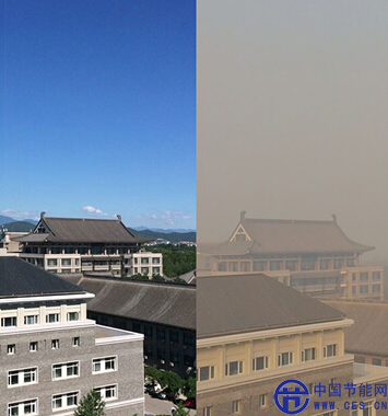 清潔天與PM2.5質(zhì)量濃度迅速升高,導(dǎo)致能見度下降,形成霾對比