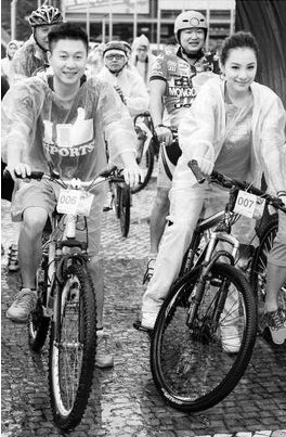 核心提示:8月24日,體操奧運(yùn)冠軍李小鵬(左)、劉璇冒雨在澳門(mén)與市民一同參加“奧運(yùn)金牌運(yùn)動(dòng)員訪澳系列活動(dòng)——節(jié)能單車運(yùn)動(dòng)”,推廣節(jié)能減排。