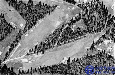 松樹叢2號球場在1943年的航拍圖,中心線灌溉系統(tǒng)鋪設(shè)在球道中央。