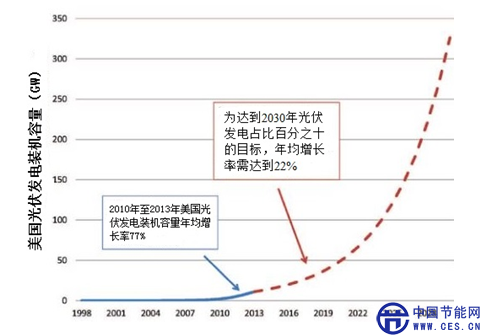 為達(dá)到2030年百分之十的目標(biāo),需要在接下來(lái)的十五年年均增長(zhǎng)率達(dá)到22%。其實(shí)這一目標(biāo)不難達(dá)到,因?yàn)檫^(guò)去三年美國(guó)光伏發(fā)電容量年增率到達(dá)77%。實(shí)現(xiàn)目標(biāo)的最大困難來(lái)自一些阻礙光伏發(fā)展的政策。例如遍布全美的電力公共事業(yè)部門(mén)就反對(duì)凈計(jì)量電價(jià)政策和光伏補(bǔ)貼政策。美國(guó)立法交流委員會(huì)主張廢除美國(guó)可再生能源配額標(biāo)準(zhǔn),該標(biāo)準(zhǔn)要求美國(guó)新能源占總能源達(dá)到一定的百分比。