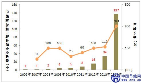 2006年-2014年各年節(jié)能環(huán)保新三板掛牌企業(yè)數(shù)量