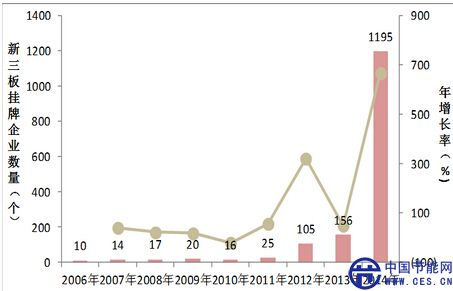 2006年-2014年各年新增新三板掛牌企業(yè)數(shù)量