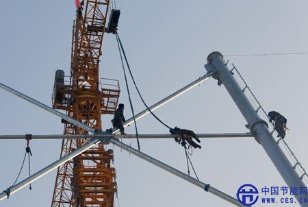 核心提示: 1月1日,施工人員在江蘇興化市境內(nèi)采用“落地式雙平抱桿”工藝組立特高壓鐵塔。這種工藝有效解決了高塔組立需要大范圍施工場地的問題,做到省地、省工、安全。
