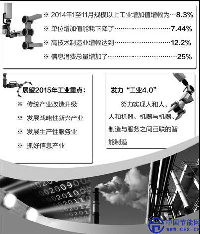 答:2013年年底定下的工業(yè)增加值增幅目標為9.5%。這個目標是根據(jù)中央對2014年GDP增幅目標設(shè)計和2013年四季度規(guī)模以上工業(yè)增加值增幅確定的,可以說是有根據(jù)的,實事求是的。2014年10月和11月的規(guī)模以上工業(yè)增加值分別為7.7%和7.2%,1至11月規(guī)模以上工業(yè)增加值增幅為8.3%。我們判斷8.3%的增速還處在一個合理區(qū)間,支撐了GDP約7.4%的增幅。同時結(jié)構(gòu)調(diào)整取得了新進展,如單位增加值能耗下降了7.44%,高技術(shù)制造業(yè)增幅達到12.2%,信息消費總量增加了25%等。當然,我們應該看到經(jīng)濟下行的壓力比較大。規(guī)模以上工業(yè)增加值增幅繼續(xù)呈現(xiàn)下行趨勢,工業(yè)企業(yè)利潤增幅下降表現(xiàn)更為明顯,10月份利潤負增長2.1%,11月更下降了4.2%。生產(chǎn)者產(chǎn)品出廠價格指數(shù)(PPI)連續(xù)33個月負增長。