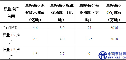 據(jù)中國(guó)紡織工業(yè)協(xié)會(huì)統(tǒng)計(jì)數(shù)據(jù),2013年全國(guó)規(guī)模以上紡織企業(yè)生產(chǎn)的棉布量為392.7億米,行業(yè)不同程度推廣無(wú)漿料技術(shù)環(huán)保效益如下: