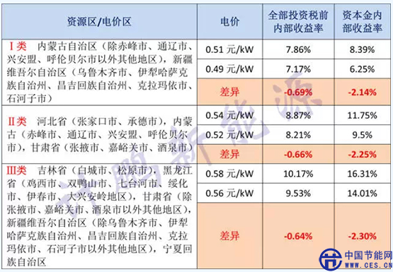 表:陸上風(fēng)電標(biāo)桿電價(jià)調(diào)整后收益變化幅度