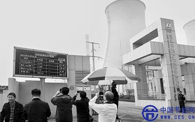 河北省會市民正在觀看河北華電石家莊裕華熱電有限公司在線監(jiān)測顯示屏上的數據。2014年,該公司完成兩臺機組煙塵治理、脫硝系統(tǒng)改造、脫硫系統(tǒng)提效。兩臺機組供熱面積1800萬平方米,供暖期煙塵排放同比減少75%,二氧化硫排放同比減少91.25%,氮氧化物排放同比減少86.6%。