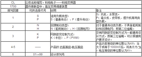 CL1700系列變頻調(diào)速裝置型號(hào)、編號(hào)及含義