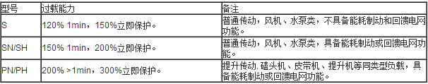 針對(duì)以下型號(hào)默認(rèn)過(guò)載能力,詳見(jiàn)表格:
