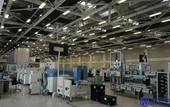 生產(chǎn)現(xiàn)場在大樓的二層,現(xiàn)場有兩條前道工序,主要是電路板組裝生產(chǎn)線。中間通過自動化的立體中轉(zhuǎn)庫,將已加工好的電路板和其他零部件轉(zhuǎn)送到后續(xù)的五條產(chǎn)品組裝生產(chǎn)線,完成產(chǎn)品的裝配和包裝。在各個關(guān)鍵工序設(shè)置了電子看板,生產(chǎn)過程大部分是自動化,員工更多地工作時在處理異常情況,監(jiān)控設(shè)備運行,進行產(chǎn)品的復(fù)檢等。戴經(jīng)理介紹,生產(chǎn)場地的地面有很多圓孔,設(shè)備的線纜通過圓孔轉(zhuǎn)到地板下面來連接,便于靈活調(diào)整設(shè)備的布局。
