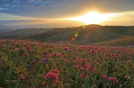 夏天開(kāi)滿紫色韭菜花的韭菜坪風(fēng)電場(chǎng)