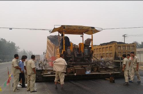 侯宇輝所在單位——天津鑫路橋的施工隊伍在進行路面施工