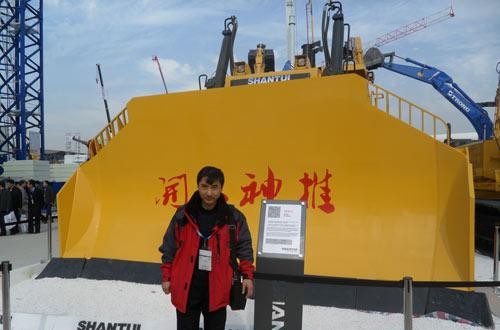2012上海寶馬展上,侯宇輝與山推的開天神推合影