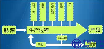 一個生產(chǎn)和服務(wù)過程中的能源利用可以抽象成八個方面,即能源、技術(shù)工藝、設(shè)備、過程控制、管理、員工等六個方面的輸入,得出產(chǎn)品和廢棄能的輸出。