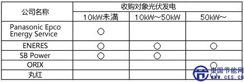 雖然都是光伏發(fā)電的電力收購,但三公司的服務(wù)卻不一樣(表)。PanasonicEpco雖然宣布的時間比較早,但尚未啟動收購服務(wù),收購對象也只是10kW以下的住宅用光伏發(fā)電和剩余電力收購。