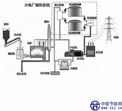 根據(jù)火力發(fā)電廠的電力生產(chǎn)流程和特點(diǎn),在燃煤鍋爐和汽輪發(fā)電機(jī)之間增加一個(gè)高效熱儲(chǔ)能裝置,用于緩沖調(diào)峰帶來(lái)的能量波動(dòng),使鍋爐運(yùn)行在穩(wěn)定工作點(diǎn),保證煤耗和排放最優(yōu)。
