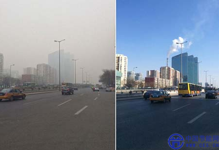 資料圖片:攝影師拍2014年北京CBD地區(qū)霧霾前后對(duì)比圖。