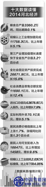 2014年,河北省經(jīng)濟(jì)增速逐季回升后,最終定格在6.5%。與2013年比,增速低了1.7個(gè)百分點(diǎn)。與2012年比,低了3.1個(gè)百分點(diǎn)。然而在經(jīng)濟(jì)增長(zhǎng)降速的同時(shí),2014年,全省結(jié)構(gòu)調(diào)整、民生改善雙雙提質(zhì)提速。這快慢之間的鮮明對(duì)比,成為河北省經(jīng)濟(jì)步入新常態(tài)后的鮮明特點(diǎn)。
