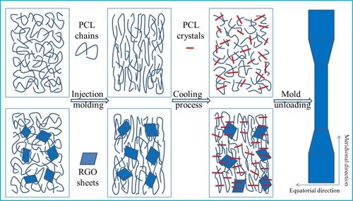 眾所周知,石墨烯由sp2雜化的碳原子緊密排列而成,其中碳-碳鍵長約為0.142nm,相鄰兩個(gè)六圓環(huán)的面心距為0.246nm。石墨烯片層表面與聚己內(nèi)酯(PCL)片晶間存在晶格匹配關(guān)系,可誘導(dǎo)PCL分子鏈在其表面附生結(jié)晶,從而產(chǎn)生“物理鉚合”作用,顯著提高二者之間的界面粘結(jié)性(Ind.Eng.Chem.Res.2013.52,15824-8)。研究人員繼而研究了注塑過程中石墨烯對PCL分子取向與結(jié)晶的影響,發(fā)現(xiàn)在附生結(jié)晶和空間限制雙重作用下PCL分子鏈的松弛抑制現(xiàn)象(Compos.Sci.Technol.2014.03.012),這為制備高各向異性高分子復(fù)合材料提供了基礎(chǔ)。研究人員還通過靜電吸附制備了UHMWPE/石墨烯抗靜電復(fù)合材料,由于形成了石墨烯三維網(wǎng)絡(luò)結(jié)構(gòu),所以具有較低的導(dǎo)電逾滲值 (Compos.Sci.Technol.2013.89,180-5;中國發(fā)明專利申請?zhí)枺?01310317580.2)。以上研究得到國家自然科學(xué)基金(51273210,51273207,51003117)和寧波市重點(diǎn)科技創(chuàng)新團(tuán)隊(duì)(2009B21008)的支持,并作為研究基礎(chǔ)申請獲批寧波市石墨烯產(chǎn)業(yè)化應(yīng)用開發(fā)專項(xiàng)1項(xiàng)(2013B6009).